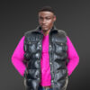 Puffy Leather Bubble Vest Jacket for Men