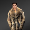 Pea-Length Loose Fit Raccoon Fur Jacket for Men