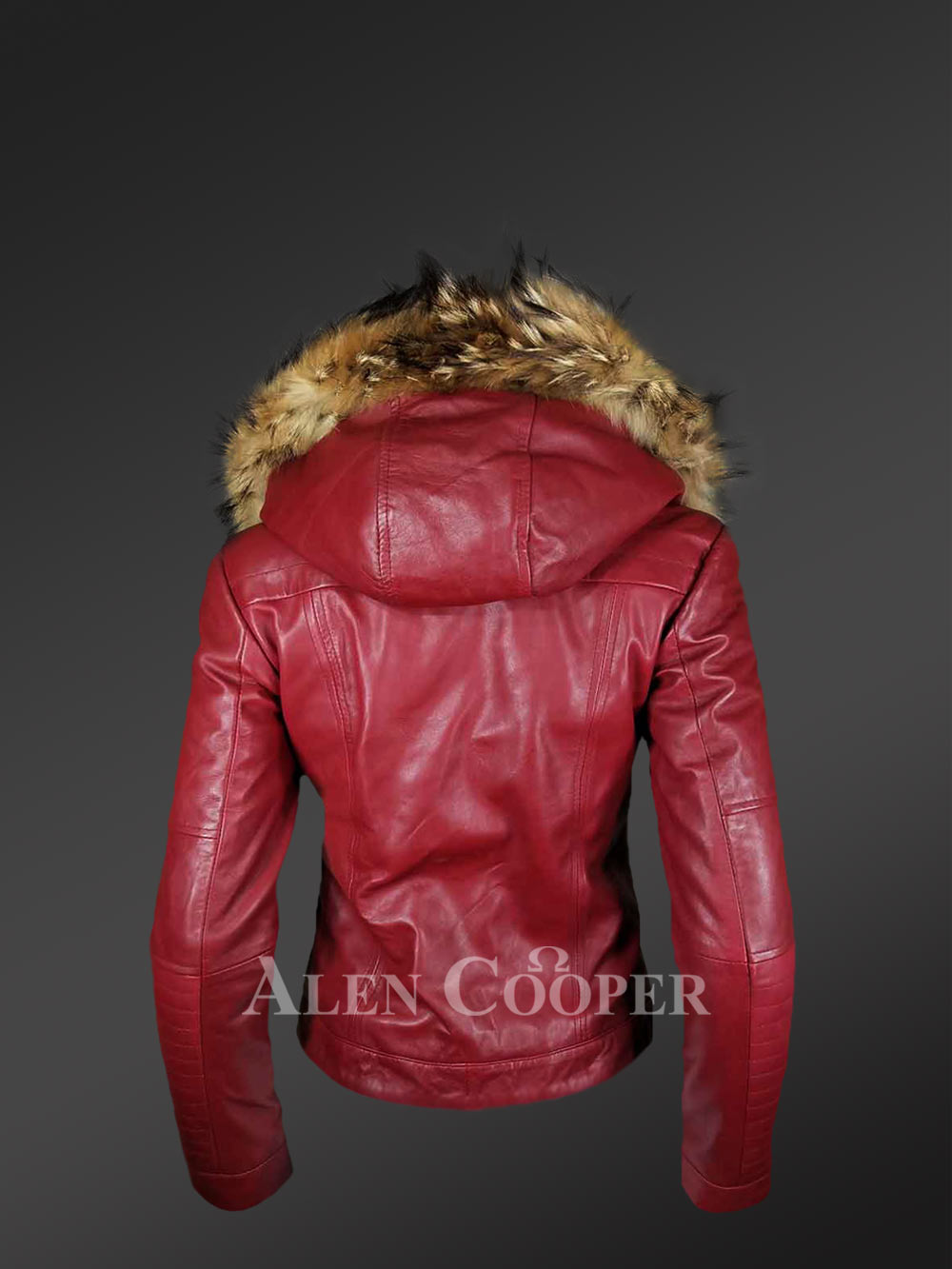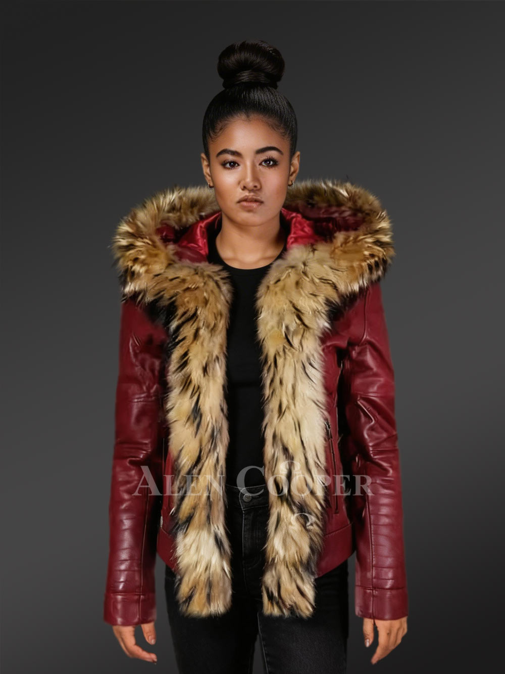 Raccoon Fur Trim Leather Jacket –A Hooded Chic Warm Wear