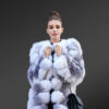 This charismatic paragraph style real fox fur winter coat for women smoothly adds sophistication and congeniality to the wardrobe as day-to-day winter wear. Alencooper has scrupulously handcrafted this magnificent attire to suit any social gatherings or formal events. This waist-length coat ending above the knee has been custom-made from genuine cross-fox fur to offer maximal warmth and a super stylish appearance to women. Superbly furnished from the original pelts of the cross fox this ultra-warm coat has a soft supple texture with a plush feel. The smart blending of dual colors namely white and grey makes this chic warm outerwear a suitable match for trousers, denims and even long dresses and skirts. The intrinsic lining of pure satin makes this attire far more delicate and smooth for the skin and does not make it feel heavy on the body.
