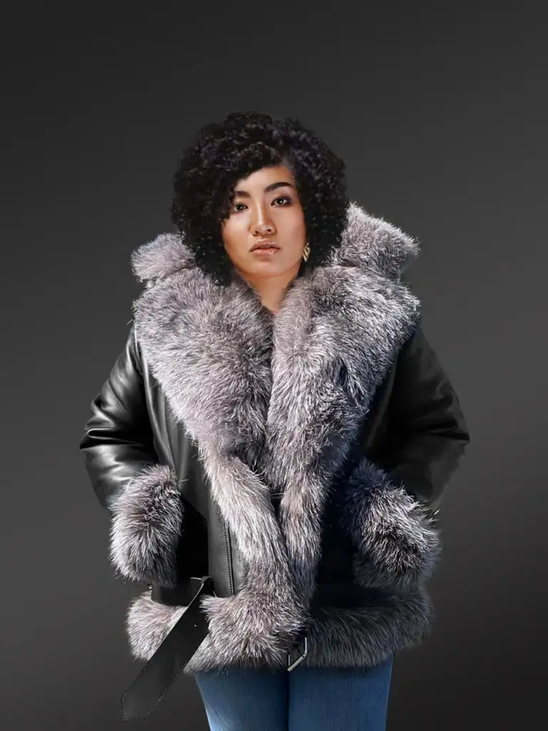 The Fox Fur embellished women coat in real sheepskin is an elegant and stylish outfit for all who love fashion. Also, it is an authentic leather coat that combines fashion, comfort, and warmth. Further, the soft and supple leather texture outside enhances the luxurious look of the jacket. Hence, outerwear is a must-have for the winter wardrobe, especially for those women who love modern-style biker jackets.