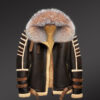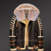 Further, it’s incorporates heavy-duty materials and features a zip-out hood with fox fur trim. And so, the Crystal Fox fur collar and hood add a touch of luxury and style. Thus, the features make this real sheepskin men coat perfect for any occasion.