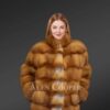 Womens Coat of Red Fox Fur – High-Fashion Outfit with Convenient Features