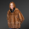 Reversible Mink Fur Bomber Jacket with Hood for Women