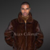 Men’s Mahogany Brown Reversible Real Full Skin Mink Fur Straight Warm Winter Coat