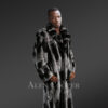- Luxurious Rex rabbit trench coat dyed to mimic the looks of chinchilla fur boasts of ultra-smooth texture