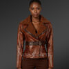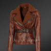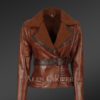 Shearling Biker Women Jacket with a Waist Belt