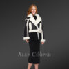 Shearling Womens Crop Coat in Attractive Black And White