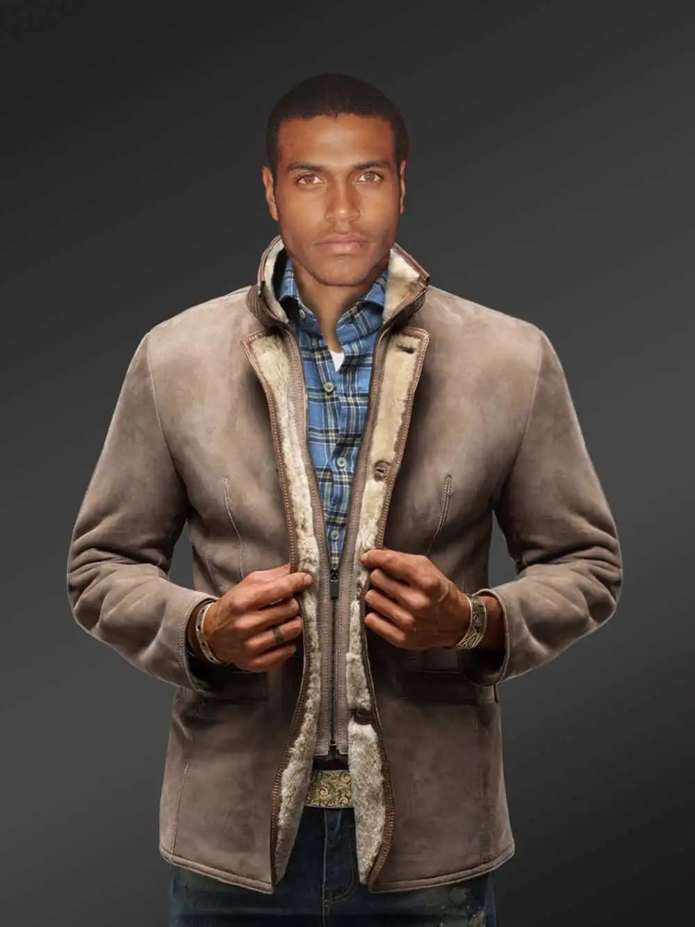 This fashionable sheepskin shearling blazer feels markedly soft to wear owing to the finest quality lamb leather. Without a doubt, this winterwear stands out because of its suede finish. It certainly looks plush with a matt glow.