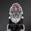 The plush winter wear comes with a hood and lapels detailed with original silver fox pelts. Again, the original fox fur lining has long, guard hair that is thick and fluffy. Hence, helps in protecting against strong winds. In addition, the natural shade enhances the entire outlook of the outfit. Also, the cuffs, arm lines, and shoulder highlights the silver fox fur.