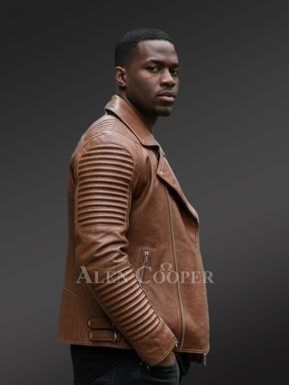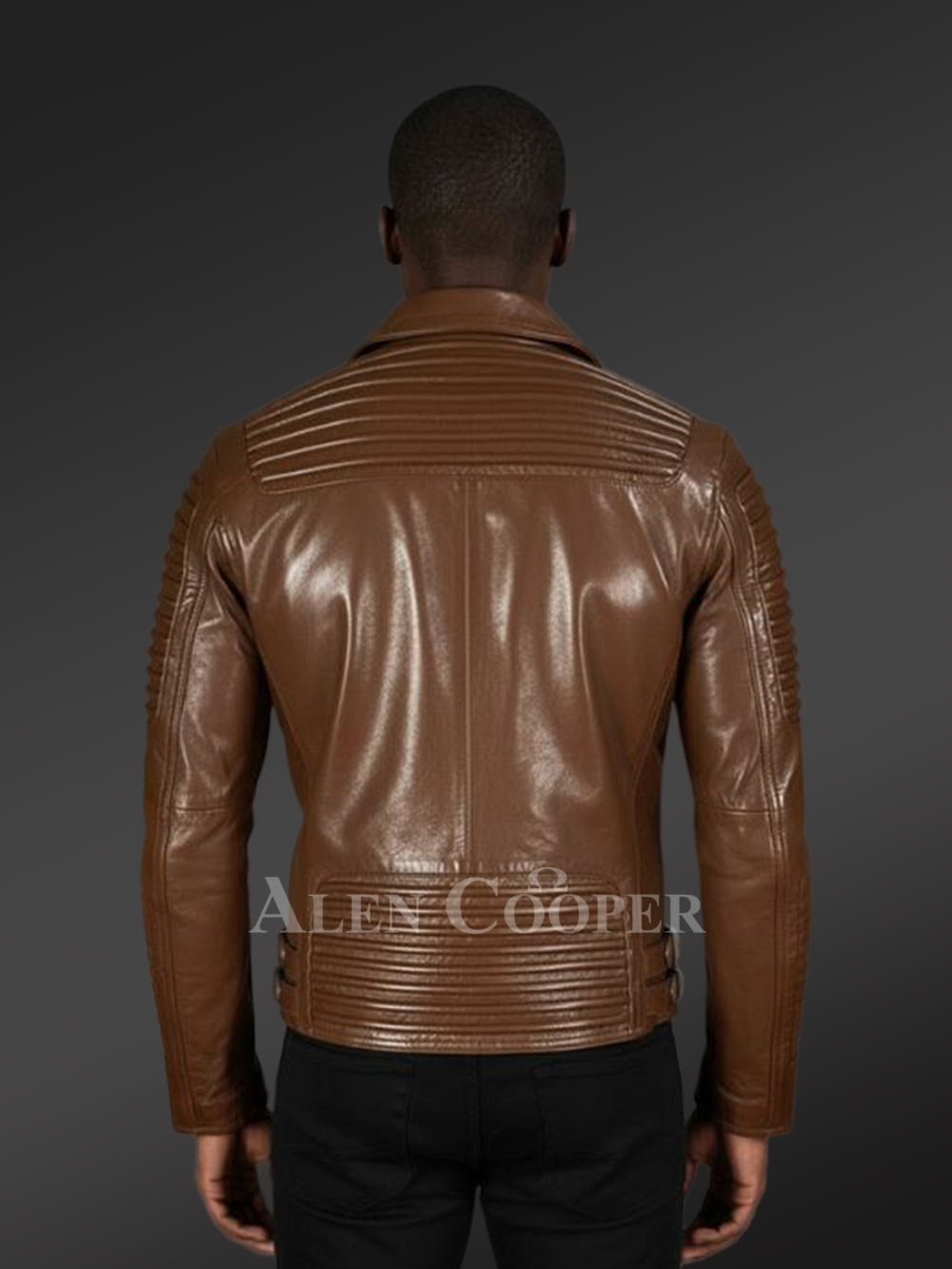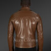 Overall, the piper style attribute along the shoulder and back completes the exceptional touch of the tan-colored Slim Fit Leather Jacket.