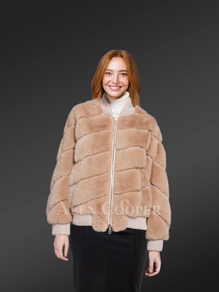 Womens Stylish Mink Bomber Jacket with Appealing Features