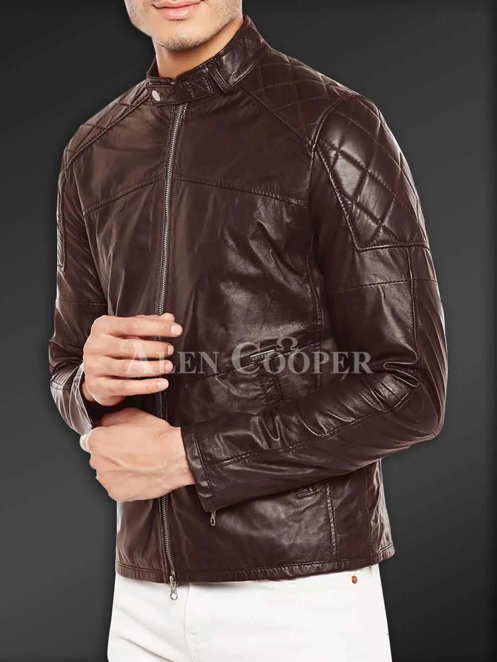 Description: This is a highly demanded leather winter piece and it belongs to Alen Cooper’s latest winter light weight leather jackets 2019. You can notice that it has stylish quilts on its shoulder and lower back, front straight zipper closure, slim pockets, and long sleeves as its main attributes. In order to have warm winter without wearing too many things or heavy weight jackets, trying this one will be a nice decision!