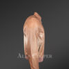 - Deluxe bomber jacket of lambskin leather looks fascinating in taupe with a band style elasticated collar