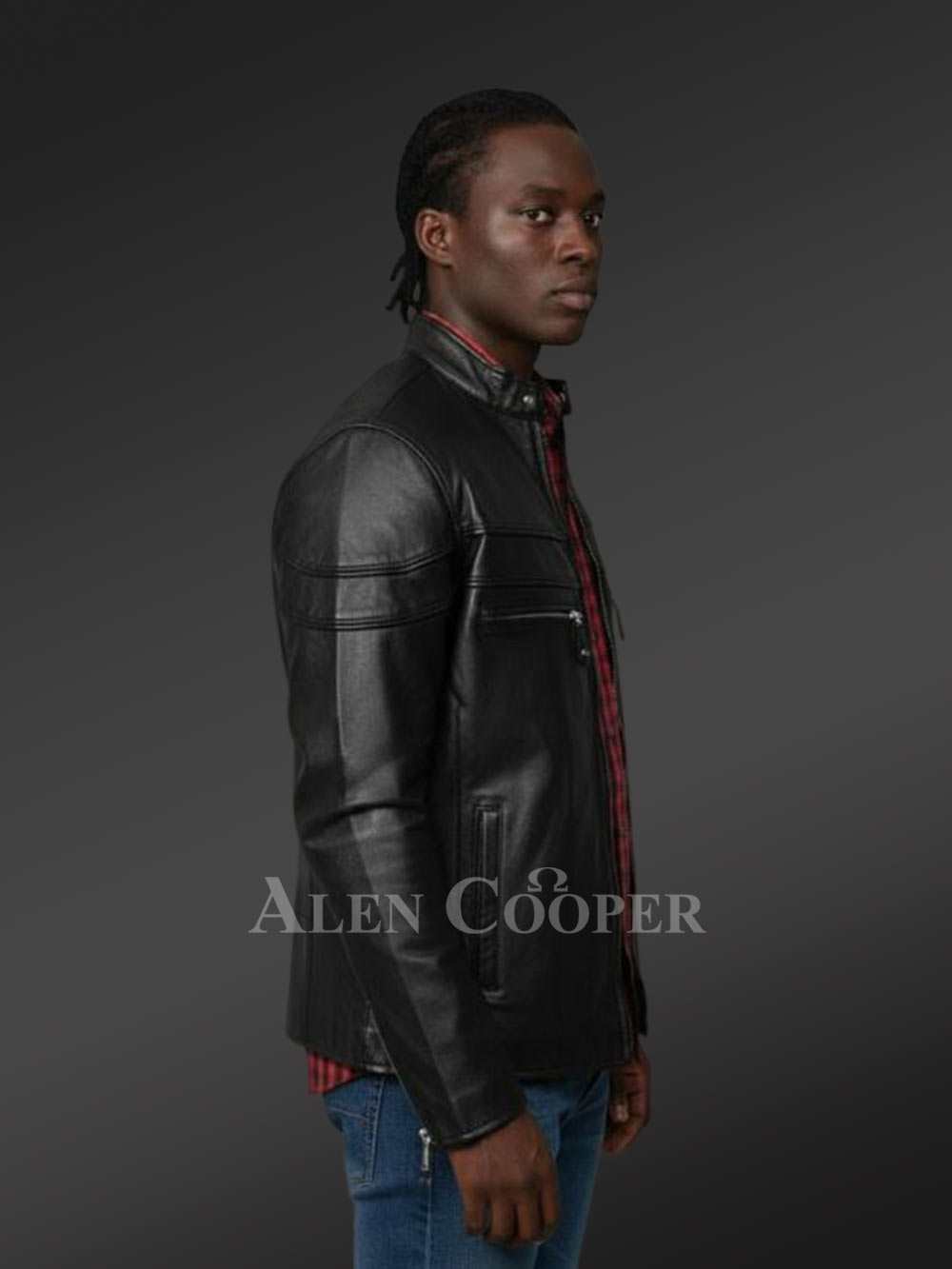 Celebrating men’s iconic fashion with this turtle neck leather jacket meticulously designed as a trendy winter outerwear. This dapper-style jacket from Alen Cooper is bound to grab your full attention with its sleek cut and elegant features. It’s a simple wear with a majestic vibe befitting any event both during the day and night. Its minimalistic form tastefully magnifies its aesthetic features through refined craftsmanship. Custom-made from genuine lambskin, this leather jacket furnishes comforting insulation to the wearer. Italian Aniline leather finish upholds the superior quality of the jacket through its plush glossy texture.