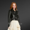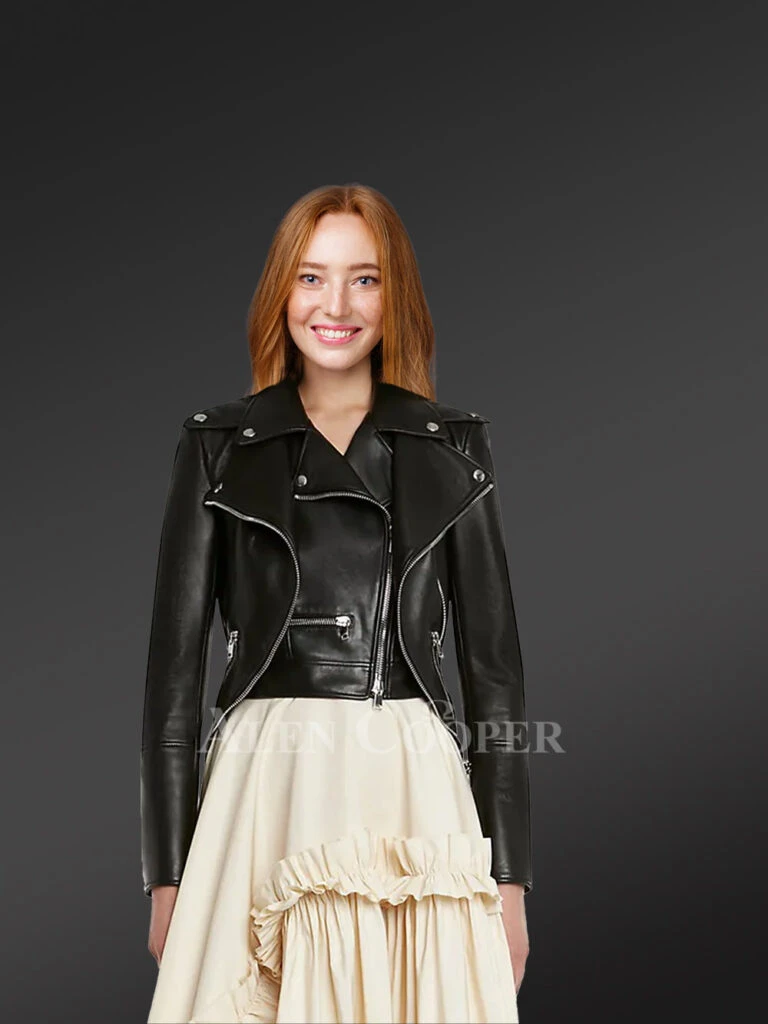 This twisted crop leather jacket can make any woman look like a diva owing to its fashionable design. This versatile outfit is befitting for all types of events be it formal, social, or casual. One may even wear this crop jacket on outings or trips. This is a lightweight outerwear and one may wear it for hours with no feeling of discomfort. Â