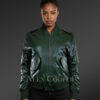 V Collar Italian Green Leather Jacket For Women