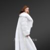 The full-length sleeves are constructed in parallel box format. Making the sleeves look bigger and denser, the long-length coat has the same characteristics inside. There are camouflaged side pockets to keep your palms warm and comfortable outdoors. The attention-grabbing aspect of the snow-white mink fur coat is the collar section.