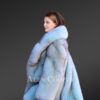 Ensuring value for money, the swing coat has vertical pelts of fur lining. The black tinge on snow-white fur looks impeccable. The A-line format of the Arctic fox fur coat is unique and in huge demand. It is enhanced with satin finish of top-notch quality keeping you fresh and warm.