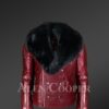 It is well-detailed with a pair of collar belts along the neckline. When you are wearing the jacket without the fox fur collar, the belts could help in covering your neck section. The wine body is lustrous and looks impeccable with sleek yet stylish detailing. Having perfect stitching, the jacket is well decorated with silver snap buttons.