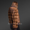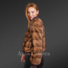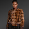 Defined by its rich brown tones and sleek design, this womens mink fur bomber jacket is a refined expression of modern luxury. It features smooth and horizontal sections of the fur that create a balanced visual flow. The natural sheen of mink fur adds depth and subtle radiance to this elegant piece.