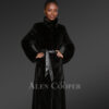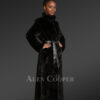 - Posh long coat of black mink fur looks exquisite with a turtleneck collar and long sleeves