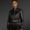 A luxurious womens crop bomber jacket like this one can be a versatile outerwear for the winter. Its undeniable aesthetic charm is perfectly balanced by its practical features. A woman may wear this versatile outfit to add an edge to the feminine look and to look trendy on casual outings.