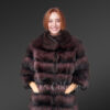 The aesthetic appeal of this womens designer raccoon fur jacket makes it a valued addition to one’s wardrobe. It has been handcrafted using finest quality pelts of raccoon fur. The full-skin pelts are arranged in tiered pattern. This designing style certainly attributes to the exquisiteness of this outfit. Furthermore, the thick pelts of raccoon can keep one warm even on the coldest days of winter.