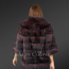 - Posh jacket of raccoon fur looks magnificent with paragraph pattern of full skin pelts in burgundy