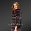 The burgundy color certainly makes this deluxe jacket look more attractive. The border of each pelt is highlighted by black shade. The modish collar undeniably glamorizes this outfit. However, this isn’t just an appealing feature. The thick collar of raccoon fur also offers pleasant warmth to the neck. This outfit is also designed with three-quarter sleeves that end slightly underneath the elbows.