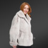With dense undercoat, the mink fur prevents the loss of body-heat and feels incredibly pleasant to wear. The velvety texture of satin lining indeed complements the smooth texture of mink fur. As evident, a thick band of mink fur accentuates the cuff on each sleeve. It indeed glorifies the appearance of this coat. The back of this trendy winter-outfit is also accentuated by a band of fur.