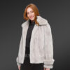 • Posh mink coat looks elegant in classy grey shade with smooth texture