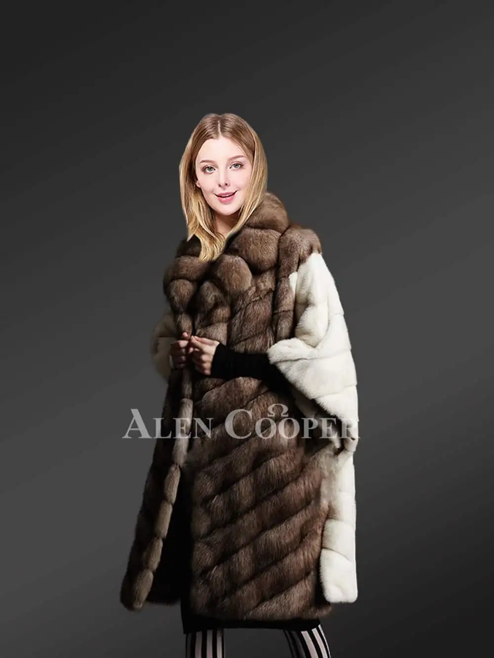 Women’s Elegant Sable Fur Coat With Wide Comfortable Sleeves