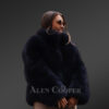 This trendy womens fox fur blue coat will let one make a bold style statement whilst enjoying the unmatched warmth of premium fox fur. The dark blue shade certainly makes this outfit look more charming and makes it stand out even in the crowd. Therefore, anyone wearing it will become the cynosure of an event or will bask in others’ admiration without any doubt. The use of fine quality fur enhances the coat’s longevity and keeps one warm with the unbeatable plush texture of fox fur.