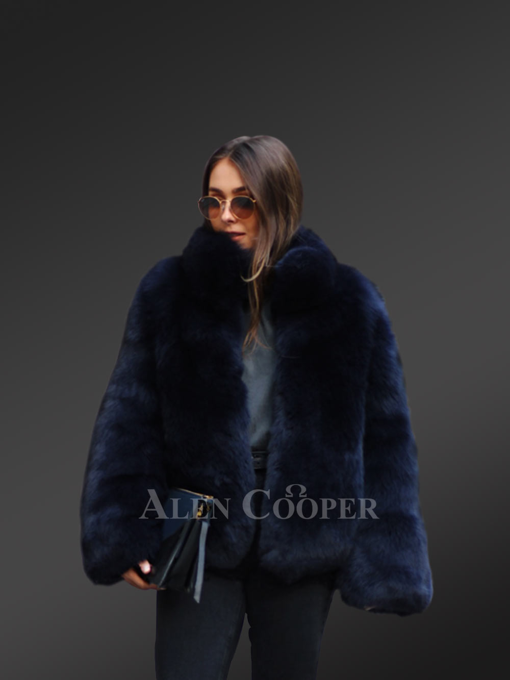 Elegant Womens Fox Fur Coat in Blue with Stunning Features