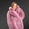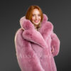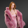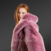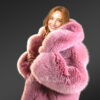 - Fashionable rose pink Pea-length winter coat in fox fur and internal satin lining