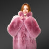 Further, the Fox Fur Long Womens Coat reflects the uniform bright rose pink shade throughout. The single tone exudes a sense of pristine elegance that holds the substantial glitz.
