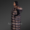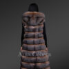Womens Fox Fur Long Vest with Hood featuring Tiered Pattern Styling