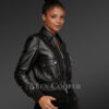 This women’s genuine leather jacket is a classic piece with a crazy style that attracts bikers and non-biker. This leather jacket is a natural lambskin leather jacket with a soft and supple texture. The classic black shade in this leather jacket enhances the appealing look. This outfit is an elegant wardrobe collection for ladies that no one likes to miss.