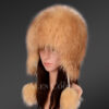 Womens Golden Fox Fur Trapper Hat Winter Warmth Cloaked in Opulence