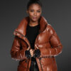 The winter wear is a suit jacket and can go well with formal and semi-formal attire. It forms a neat dressing with less ornamentation. Solo Shade in uniform brown compliments women’s fashion. Stuffed collar-back with real leather hood is secured with zipper closing. Thus the bomber jacket forms a versatile statement on weather variations.Â
