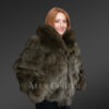 - Luxury bomber jacket of fox fur looks impressive in the charming shade of olive green