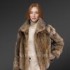 This deluxe womens hare fur coat certainly adds a touch of sophistication to any outfit and can help anyone become a trendsetter. One may wear it to sport a casual or formal look depending upon the occasion or purpose. It’s indeed a versatile outfit which features the authentic shades of hare fur in summer months. In addition to being a trendy outfit, it brings the coziness and warmth of soft hare fur.