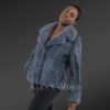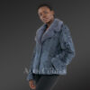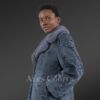 Women’s Lapel Collar Blazer in Persian Lamb with Mink Collar Accent in Grey