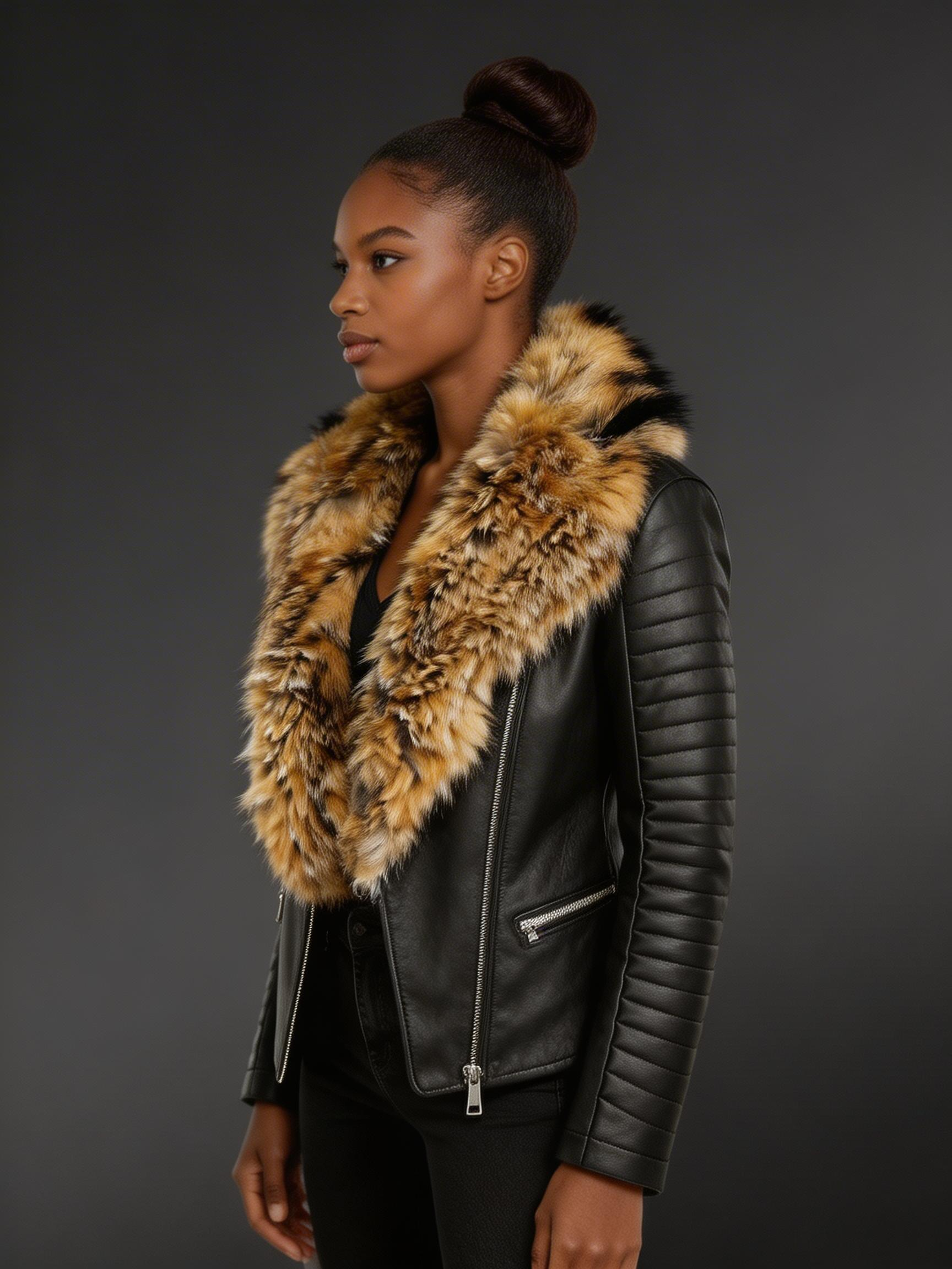 Womens Leather Biker Jacket with Fur Collar – Versatile Outfit for Many Occasions