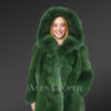Besides, the great beauty of real Arctic Fox Fur hued in emerald green is worth emphasizing in terms of aesthetics. In addition the fixed hood provides protection and lends flair to the outlook.