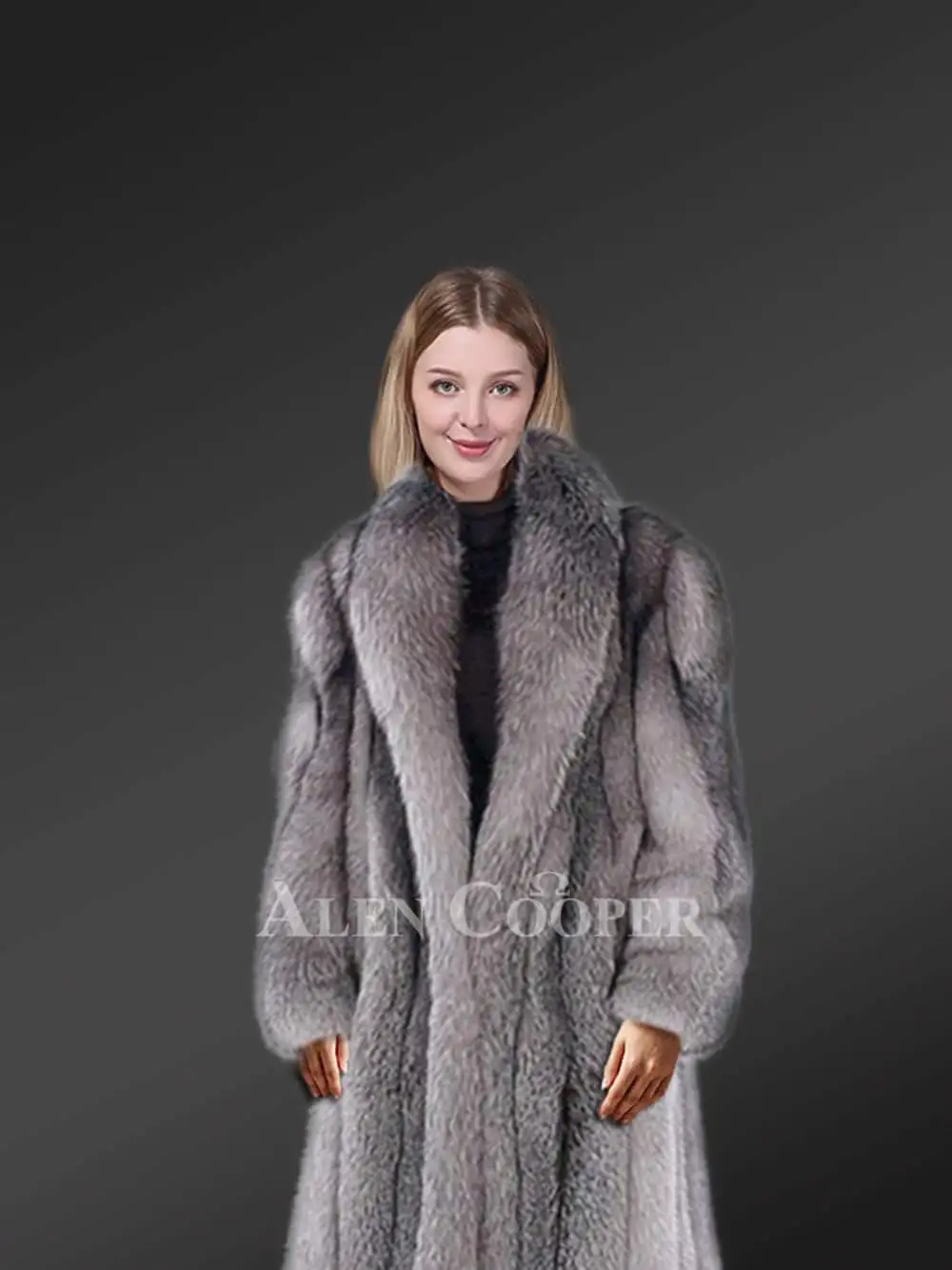 Look Majestic Wearing Womens Long Coat of Fox Fur