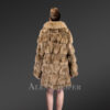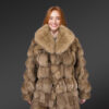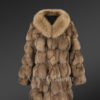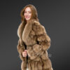 Women’s Mid Length Fox Fur coat with Fox Fur Collar in Brown
