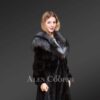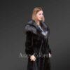 Women’s Mink Fur Coat with Silver Fox Fur Hood and Lapels