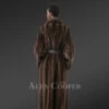 Women’s Mink Long Coat with Belt In Mahoghany Brown